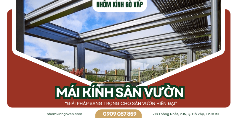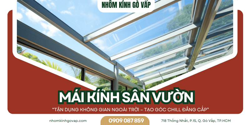 Mái kính sân vườn là dạng mái được cấu tạo từ kính cường lực kết hợp với khung nhôm, khung sắt hoặc inox, thường được lắp đặt ở khu vực sân, hiên, giếng trời, hoặc khu vườn nhỏ.