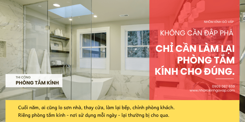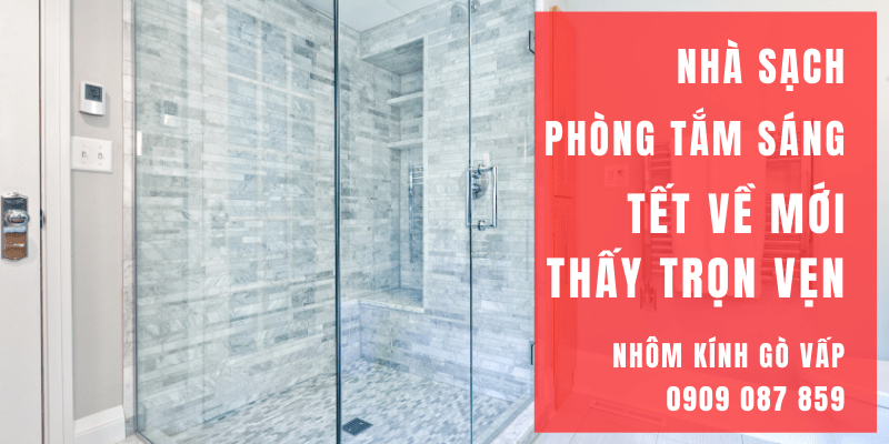 Cùng Nhôm Kính Gò Vấp kiểm tra, sửa chữa và thi công phòng tắm kính gọn - sạch - bền trước Tết.