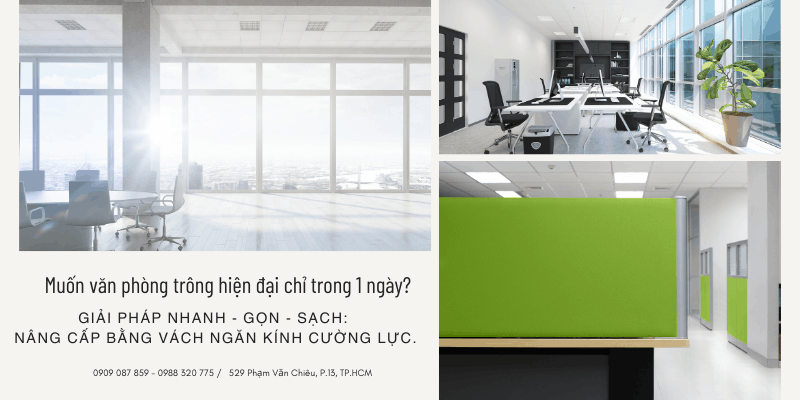 Trong các giải pháp cải tạo văn phòng, vách ngăn kính là lựa chọn tiết kiệm - bền - đẹp - hiệu quả nhất.