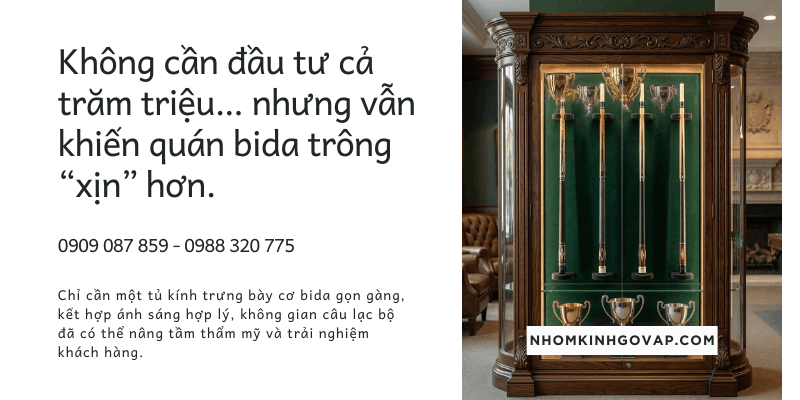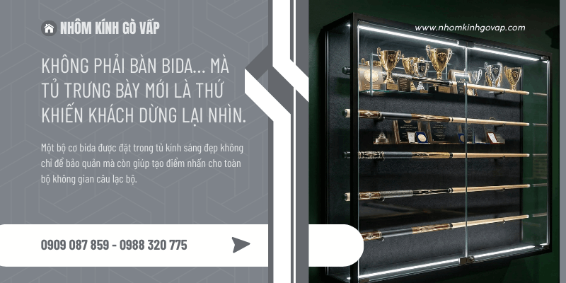 Nếu bạn đang cần thi công tủ kính trưng bày bida hoặc các hạng mục nhôm kính cho nhà ở và công trình, hãy liên hệ Nhôm Kính Gò Vấp để được tư vấn giải pháp phù hợp với không gian của bạn.