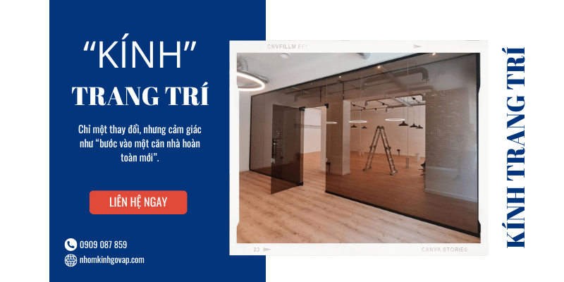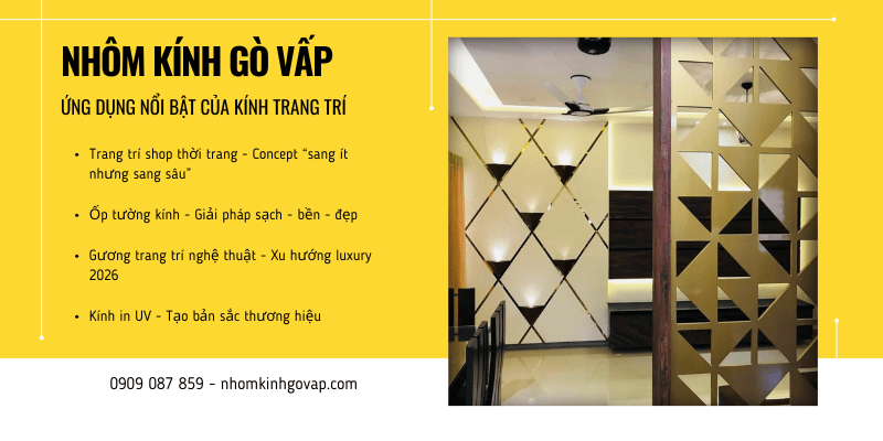 Khám phá ứng dụng kính trang trí trong thiết kế nội thất 2026: sang - sáng - rộng chỉ với chi phí tối ưu. Nhôm Kính Gò Vấp thi công trọn gói, uy tín, đúng hẹn. 0909 087 859 Sáng