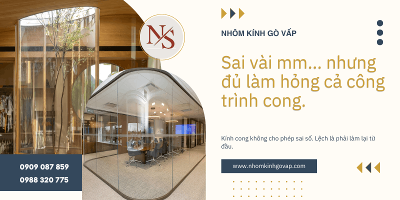 Sự thật là: kính cong không khó ở vật liệu - mà khó ở tay nghề thi công.