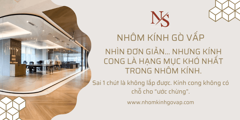 Nhìn đơn giản… nhưng kính cong là hạng mục khó nhất trong nhôm kính - Sai 1 chút là không lắp được. Kính cong không có chỗ cho “ước chừng”.